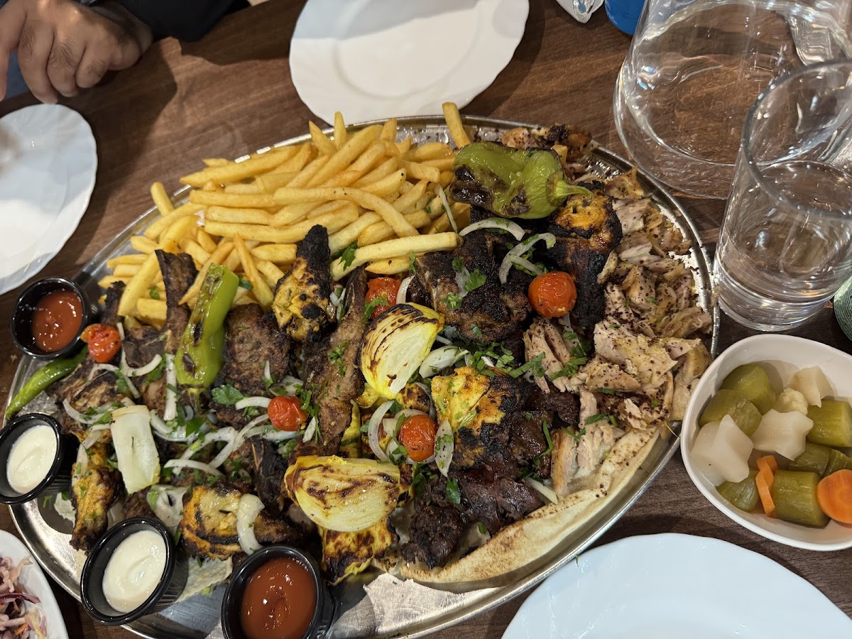 Jafra’s menu gravitates towards hearty, traditional dishes like Makloubeh — a celebrated Palestinian layered rice and lamb dish — and generous mixed grills that showcase skewers of lamb, chicken, and kofta. Those looking for something to nibble on before the mains can turn to the mezze platters, rich with dips like baba ganoush, fresh salads such as fattoush, and warm breads like arayes. Larger plates such as slow-cooked whole lamb or lamb neck offer a satisfying option for those with bigger appetites or for sharing. Sweet tooths will find the knafeh, a classic Middle Eastern dessert, a fitting finish that complements freshly squeezed juices or traditional mint tea.